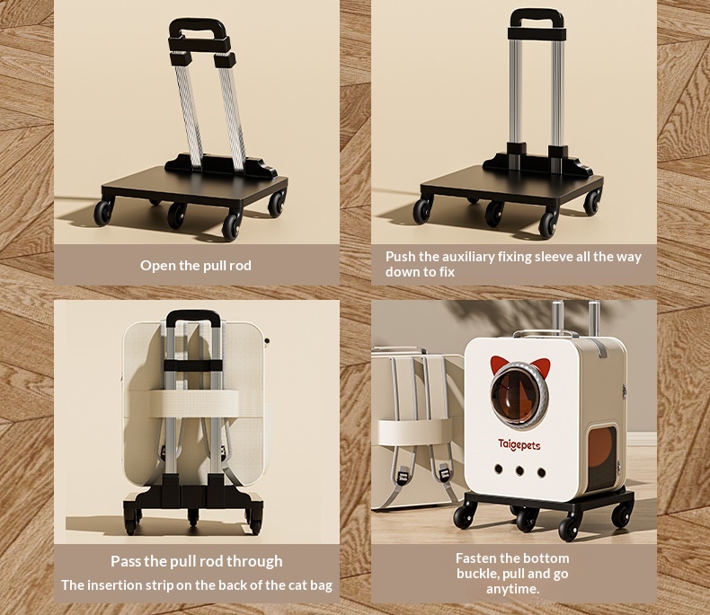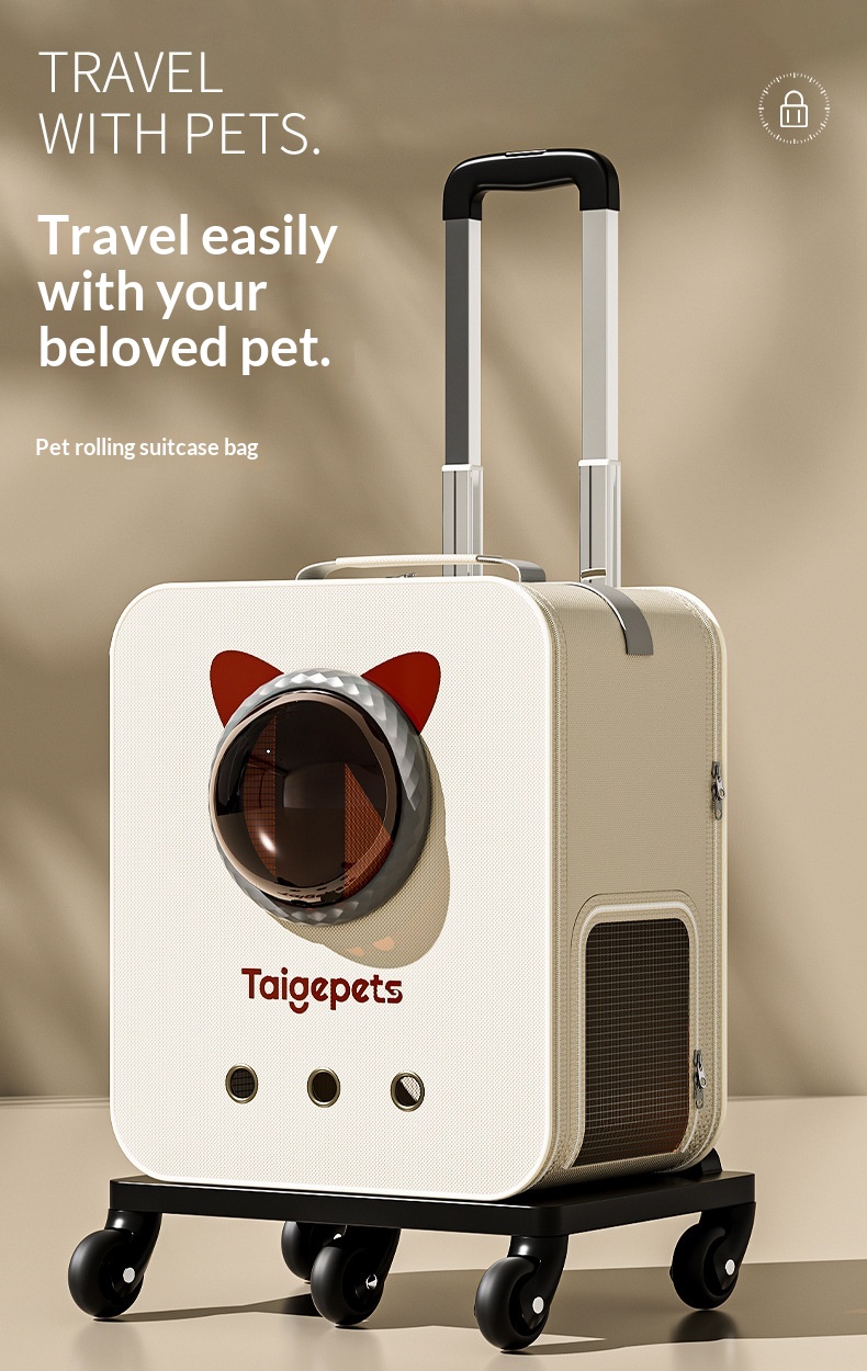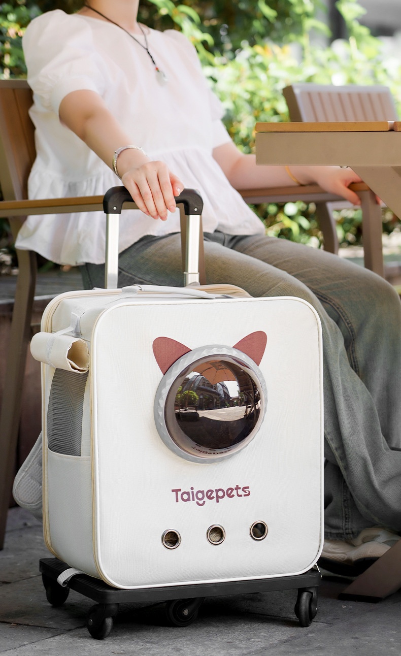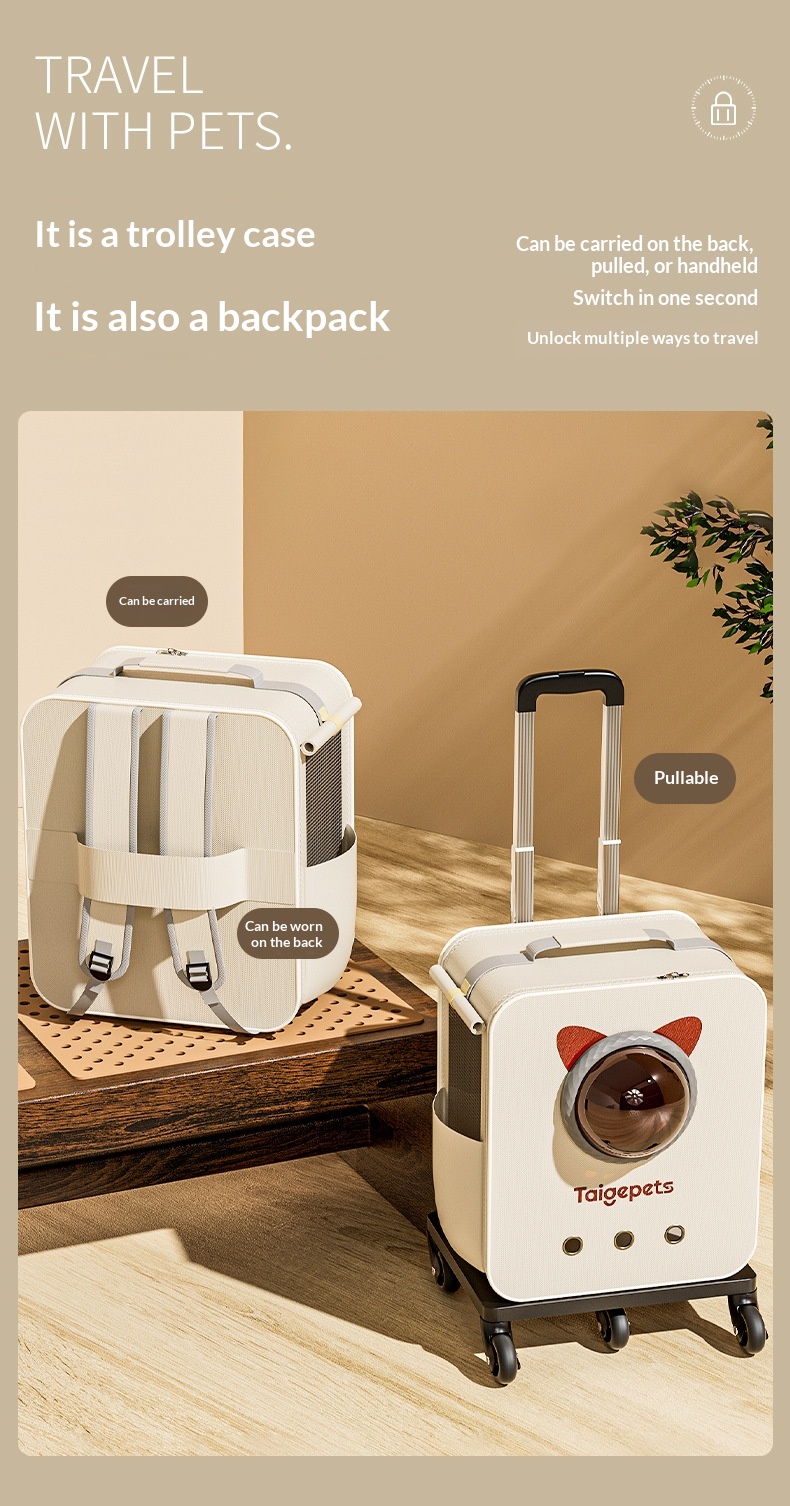 Portable Outdoor Cat Carrier Large-Capacity Trolley Bag With Shoulder Straps
